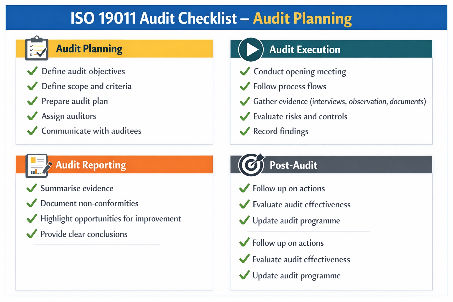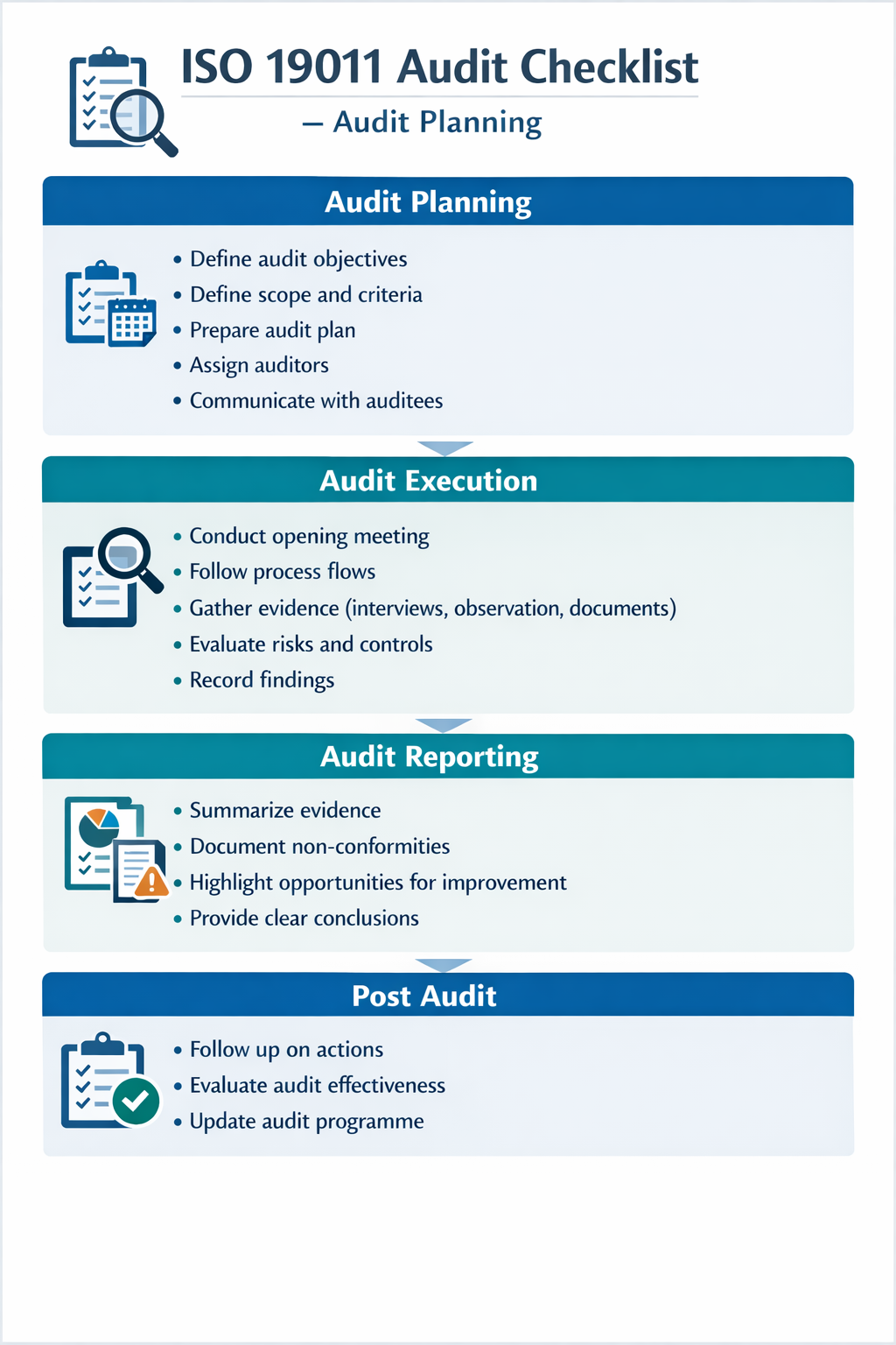 This is where process‑based auditing excels. ISO 19011 expects auditors to: